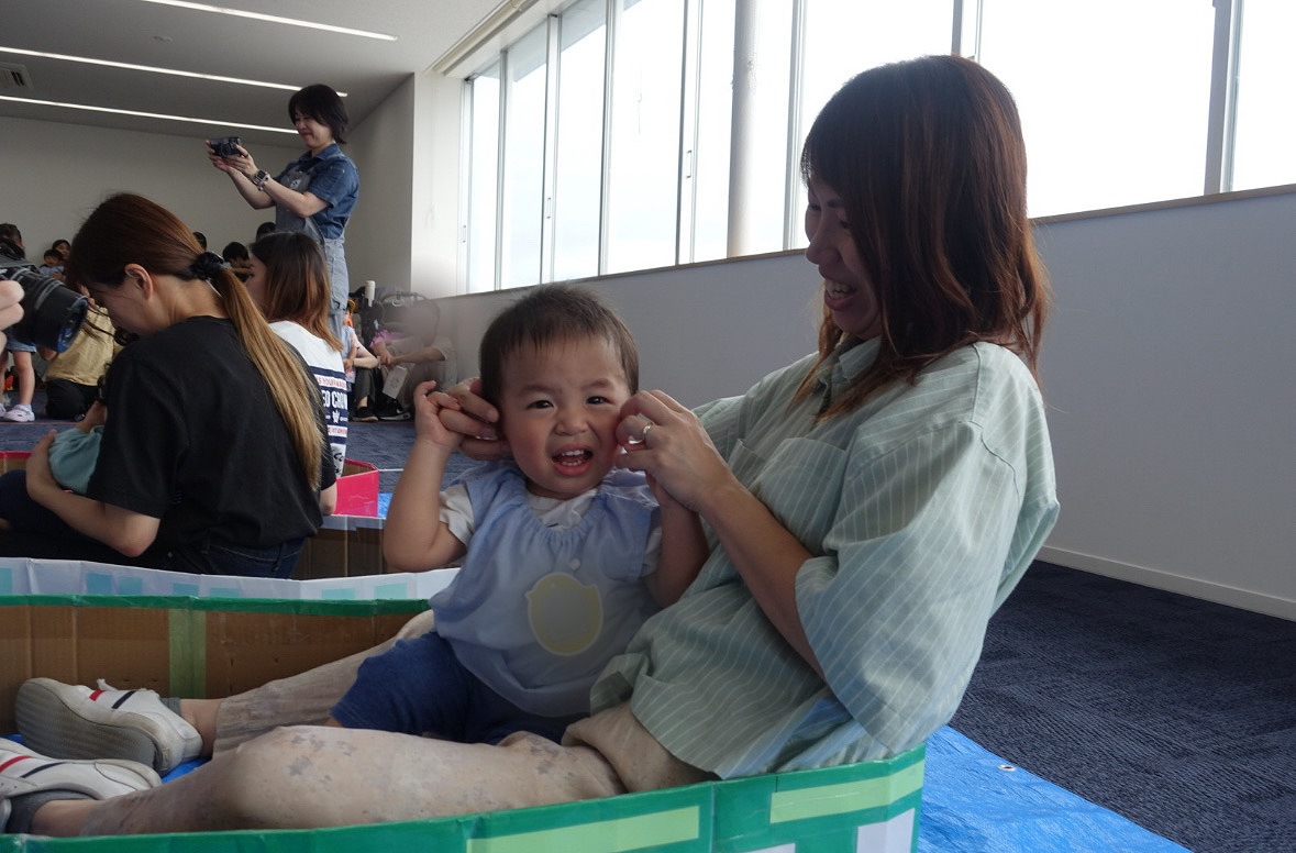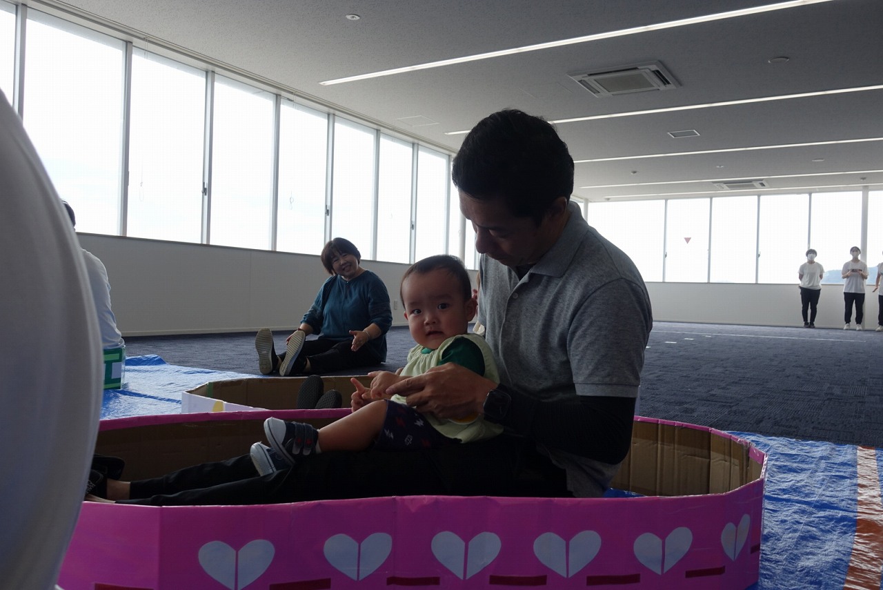 お家の方に抱っこしてもらい、「こちょこちょ電車」の出発です!🚃