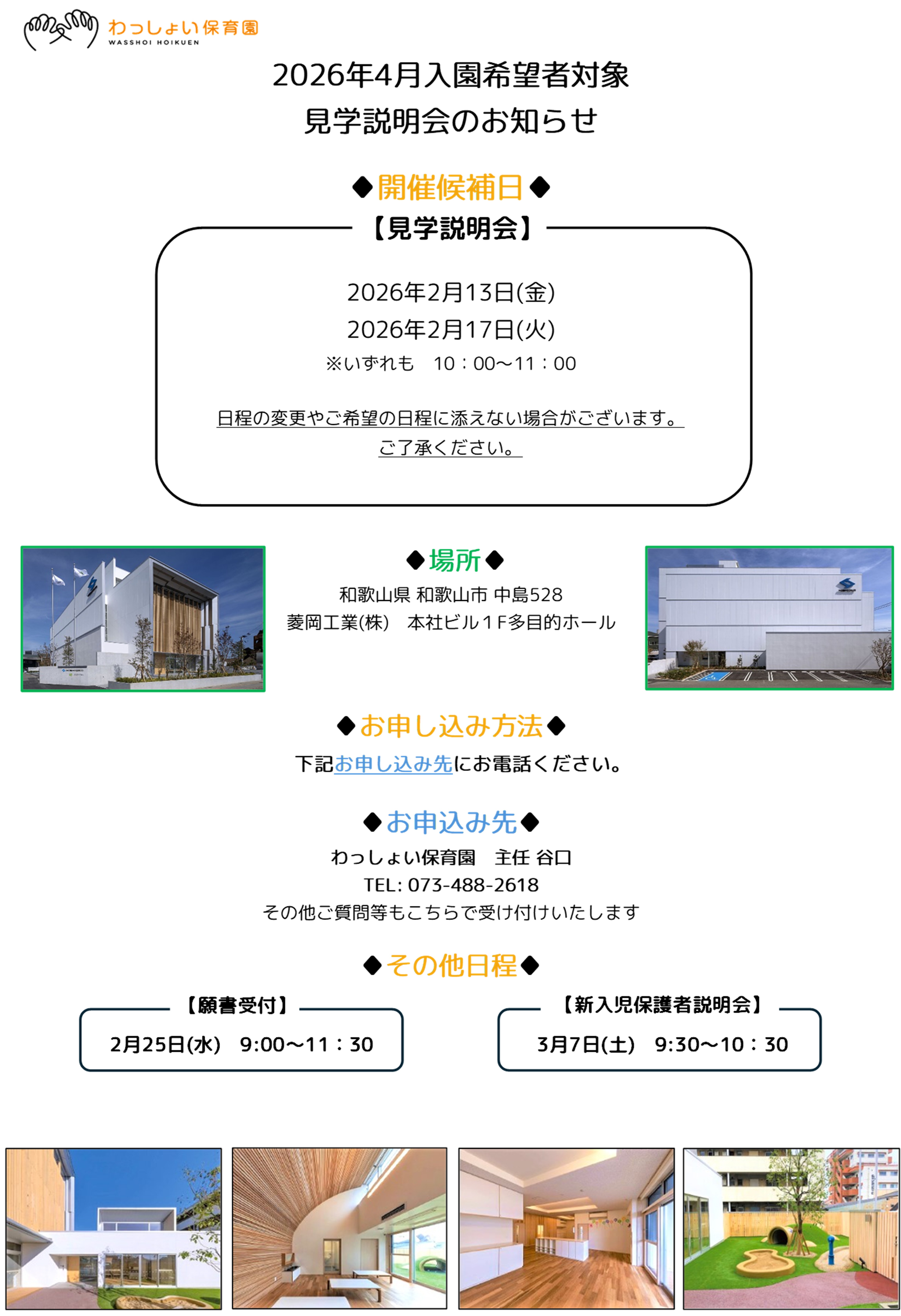 【わっしょい保育園】2026年4月入園希望者対象説明会